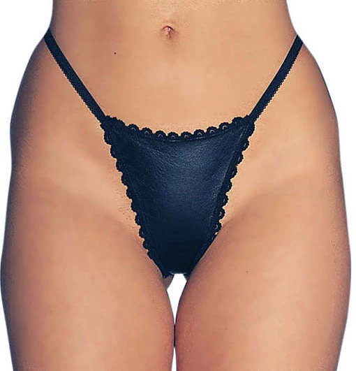 CLOSEOUT- Plus size leather thong with lace trim. One Plus Size. AL-02-133