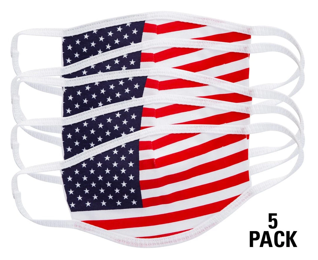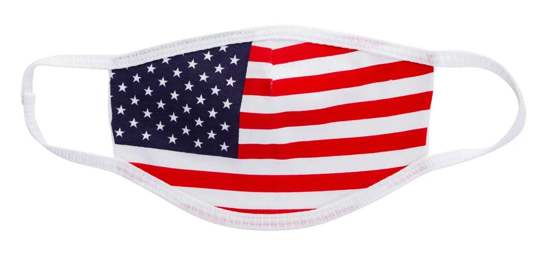 American flag face mask with ear loops, 2 layers of 100% cotton fabric, washable