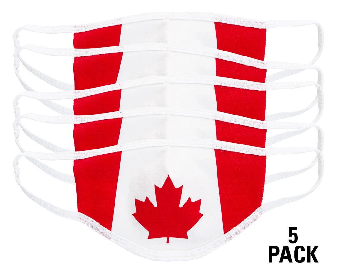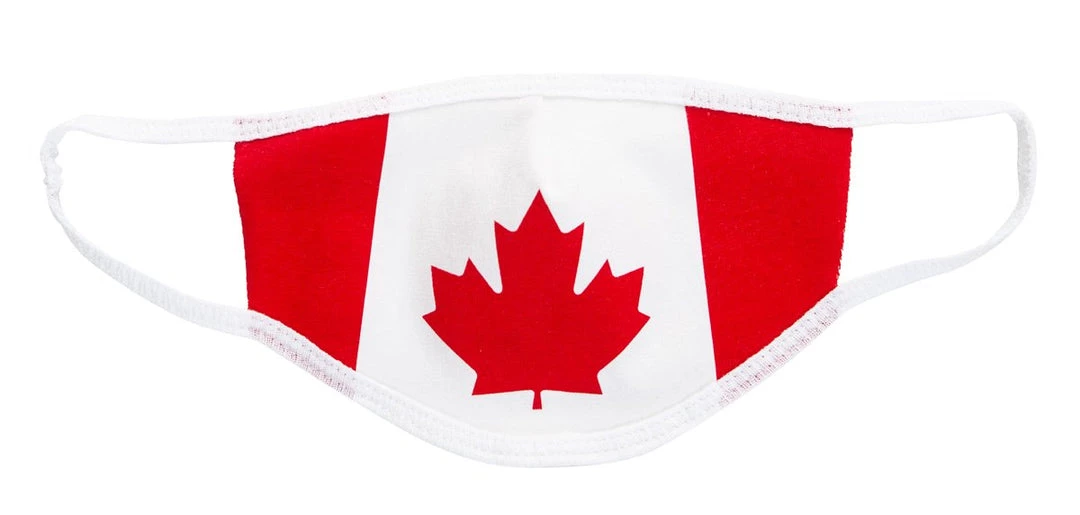 Canada flag face mask with ear loops, 2 layers of 100% cotton fabric, washable, featuring the Maple Leaf image.