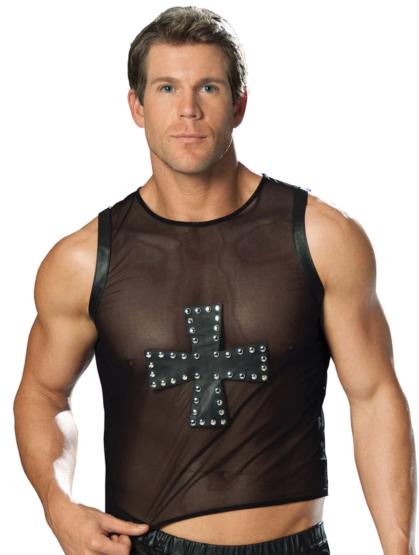Elegant Moments Men’s Mesh Tank Top With Leather Cross