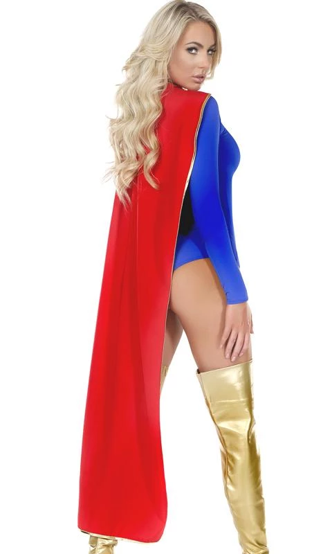 Full length red superhero cape with gold piping and velcro closure, Made in USA. The perfect addition to your American super hero costume.