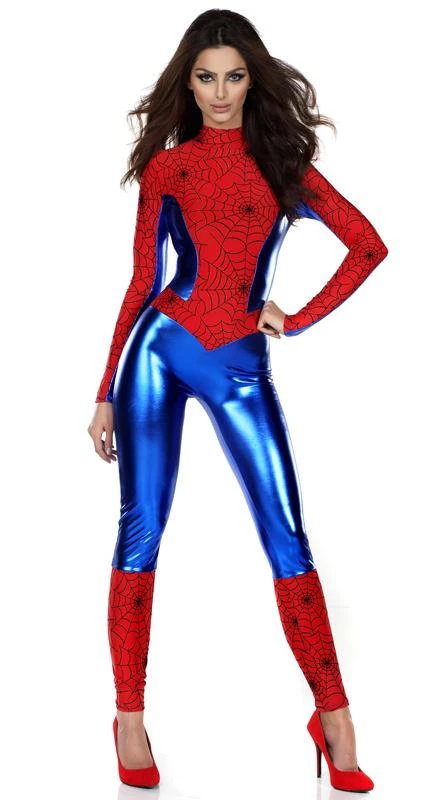 This is all you need to be the sexiest spider at your costume party this year! Lure them into your web wearing this Perfect Sense Sexy Spiderman Superhero Costume includes metallic mock neck catsuit with spider web print contrast and zipper closure, Polyester Spandex Blend, Made in USA. FP-555107