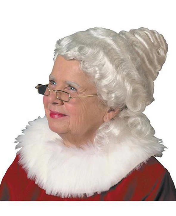 This elegantly designed deluxe Mrs. Santa Claus wig is washable and will last many seasons with the proper care. Natural color, synthetic fiber and individually boxed. HC-51