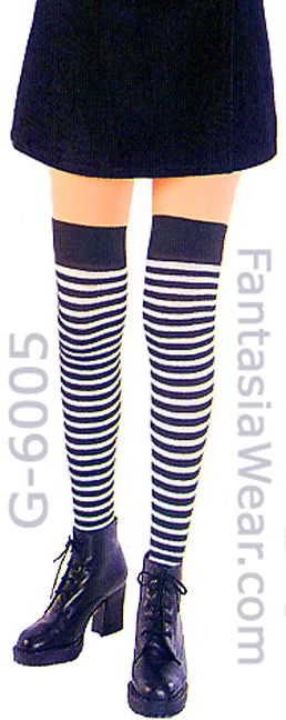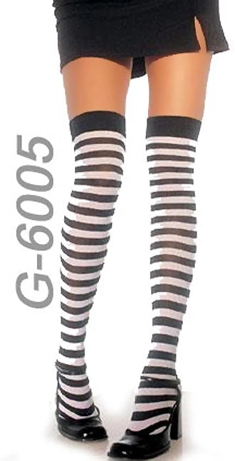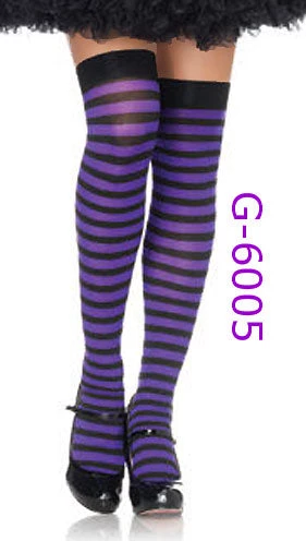 Horizontal striped opaque stockings, wide band at top, pulls up to just over the knee, 13 color combinations to coordinate with your special costume.  G-6005Â