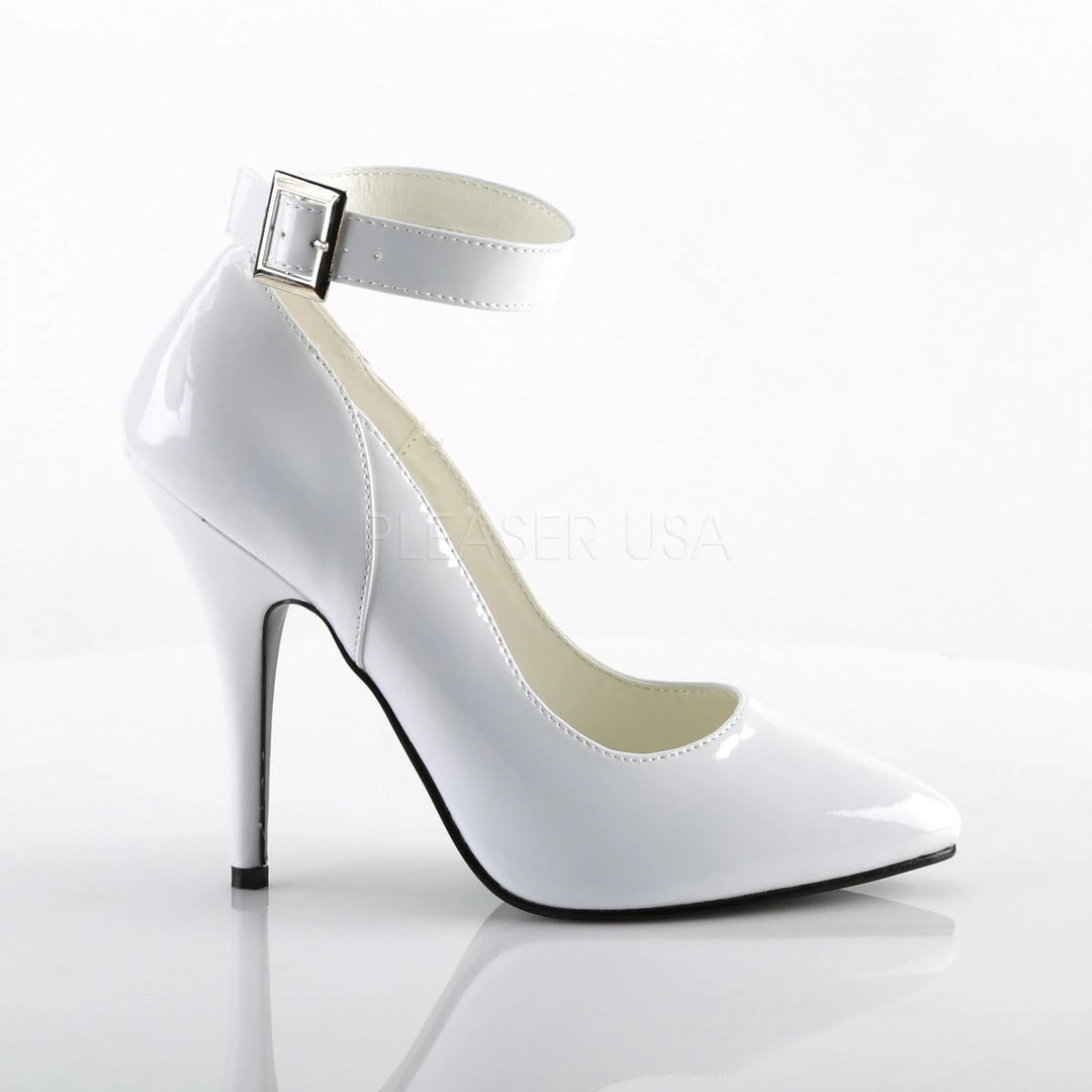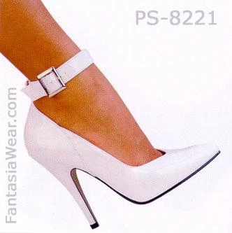 Ankle strap patent pump shoe with 5 inch heel and no platform, come in red,white or black. (previously named PS-8221). PS-SEDUCE-431