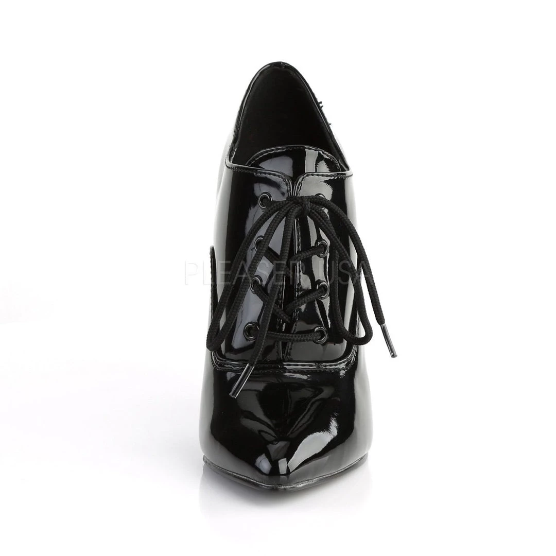 Black patent 4-hole lace-up fetish shoe with 5-inch stiletto heel. PS-SEDUCE-460