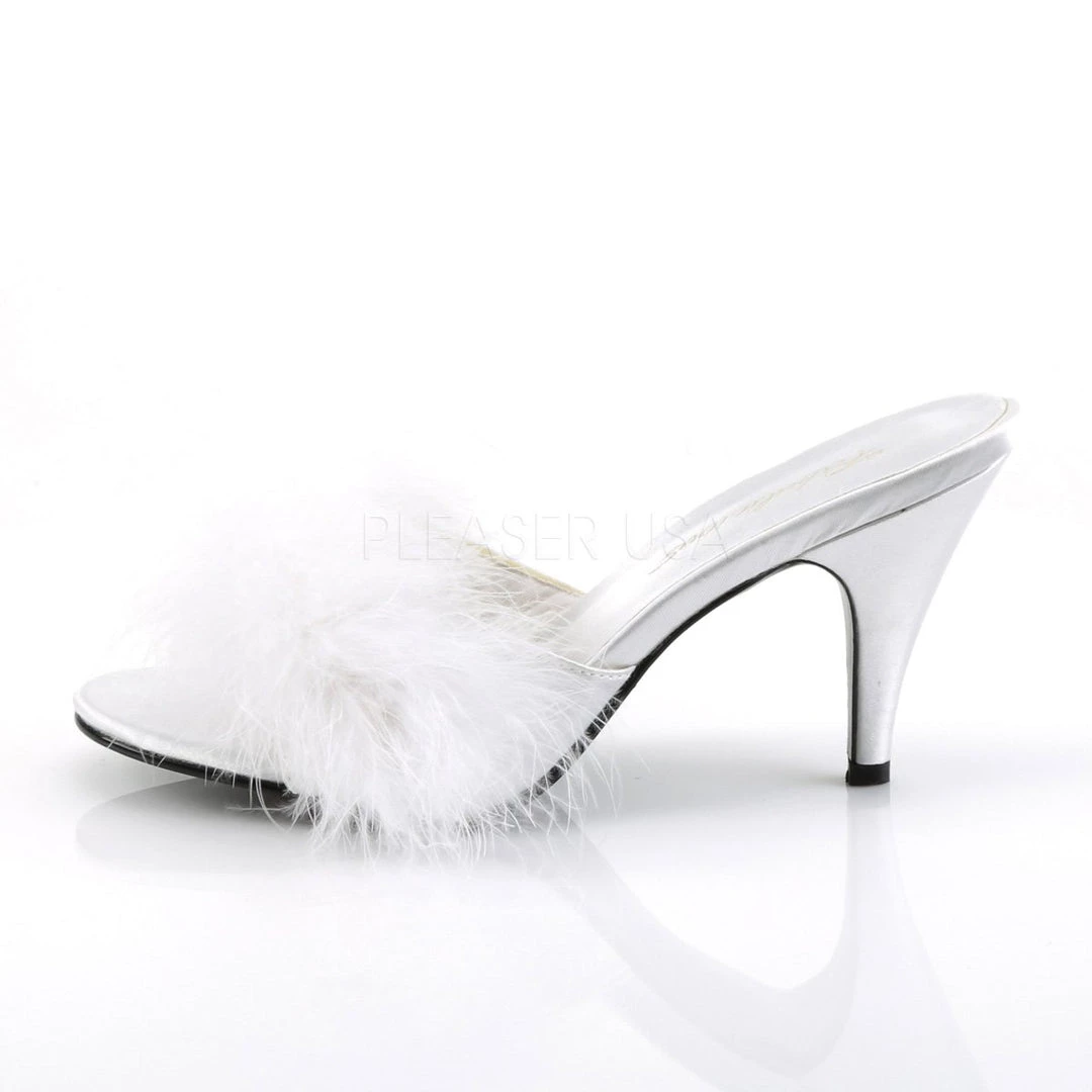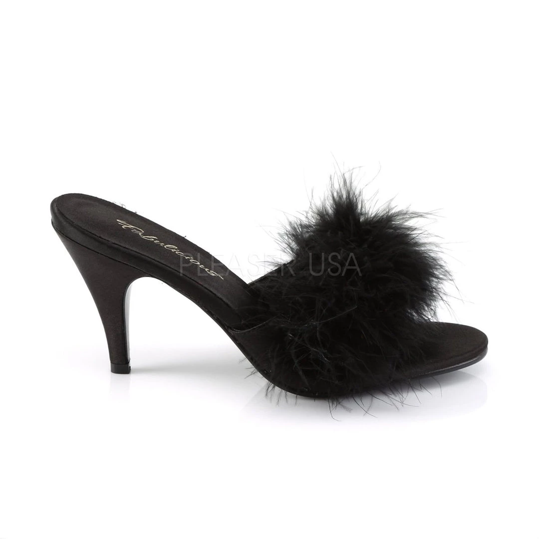 Pleaser Feather Trim Slipper Shoe With 3-inch Heel 4-colors