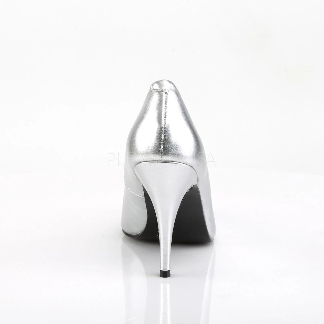 CLOSEOUT- Classic woman’s pump shoe with 4-inch spike heels, comes in red, white, silver, hot pink, baby pink, black patent and black faux leather (gold faux leather is a CLOSEOUT color). PS-VANITY-420