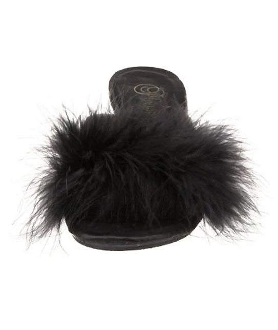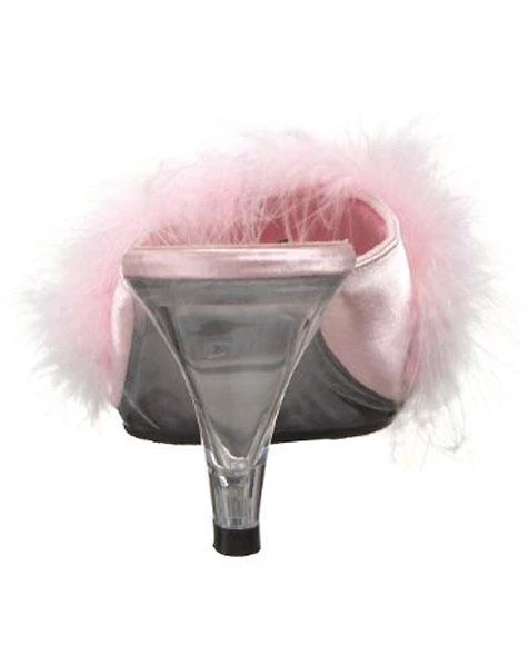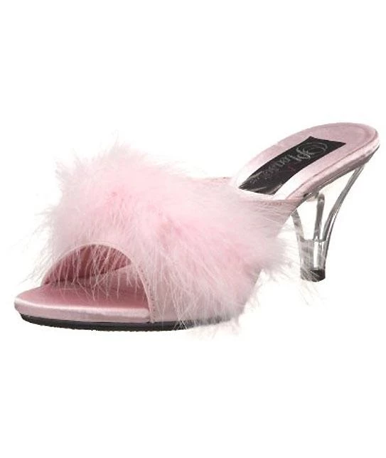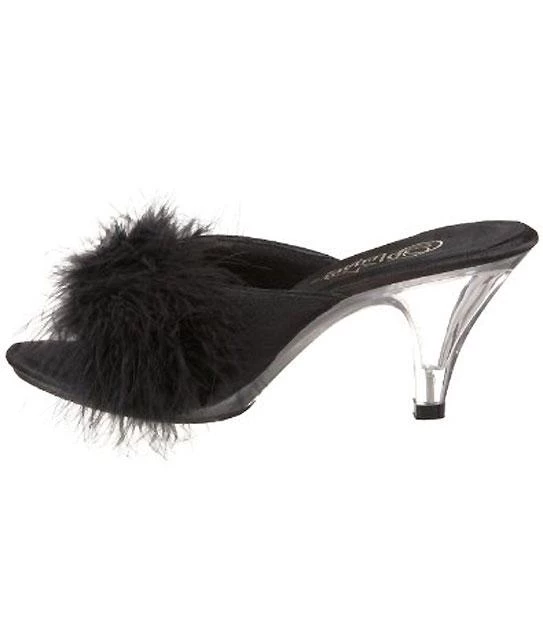 Fuzzy feather trim classic slippers with 3 inch clear heels, furry high heel slipper. PS-BELLE-301F