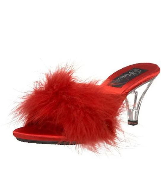 Pleaser Flag Gear Fuzzy Slipper Shoe 3-inch Clear Heel 4-colors