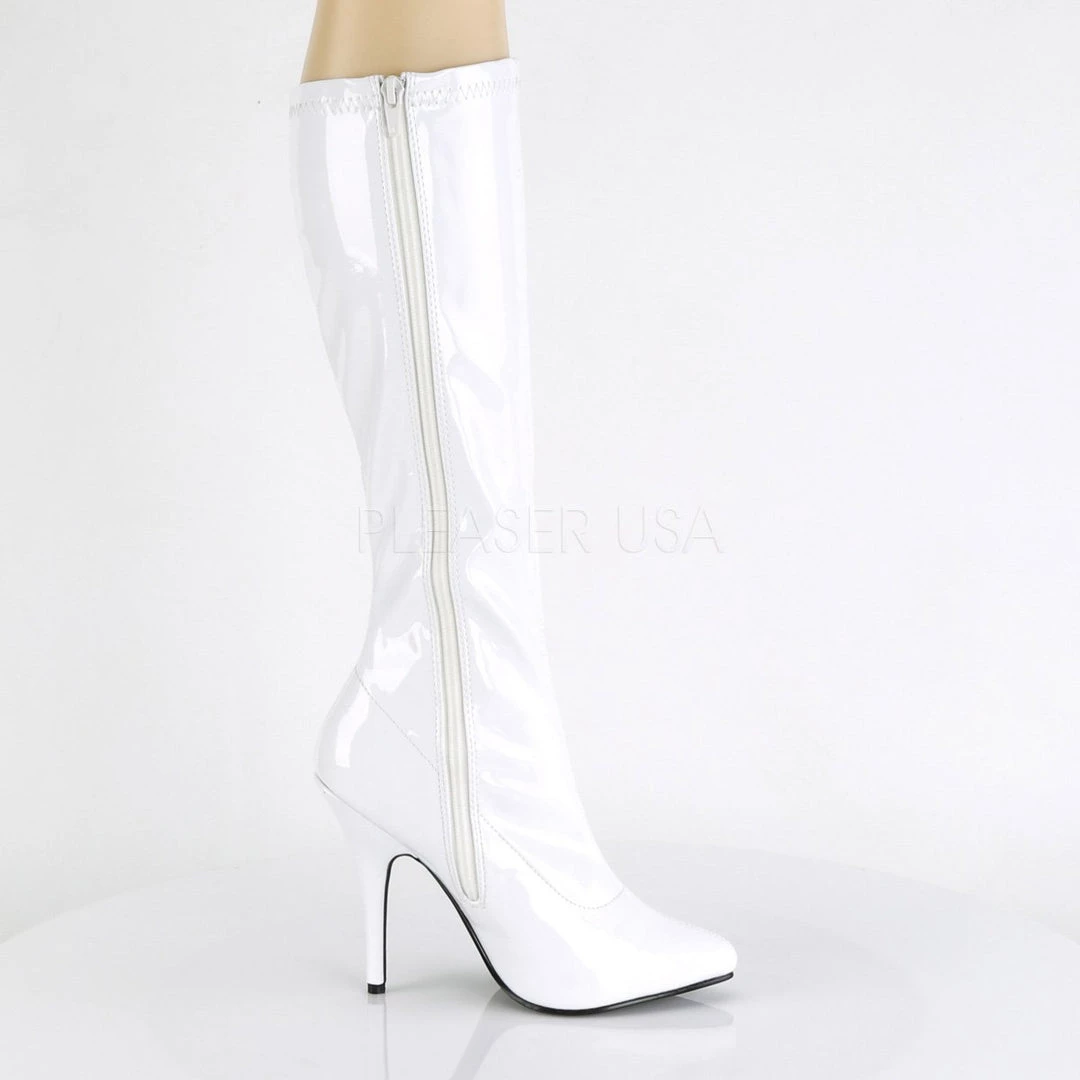 Plain stretch knee high boot with 5-inch (12.7cm) spike heel and full inner side zipper, comes in red, white or black. PS-SEDUCE-2000