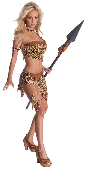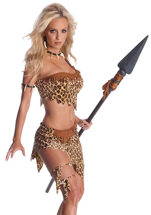 Sexy Jungle Jane 4-piece costume includes leopard top, matching skirt, panties and sashes (spear, necklace and animal print shoes sold separately). Size Medium only Colors: Leopard Print only. RU-880114