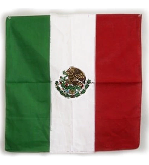 Mexican flag cotton bandanna, size 22 inches by 22 inches square, kerchief bandana with the flag of Mexico design.  RF-81562