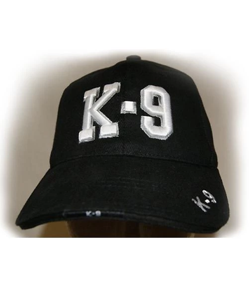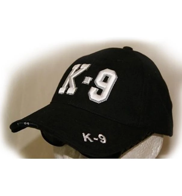Black cap with white embroidered K-9 on the front and the bill of the cap, K-9 police officer hat. Great gift for dog lovers. RF-905402
