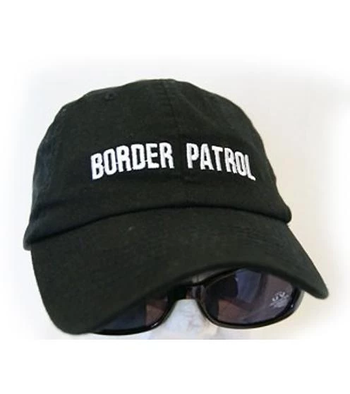 Black cap with white embroidered BORDER PATROL on the front of the cap. Police law enforcement hat. RF-300026