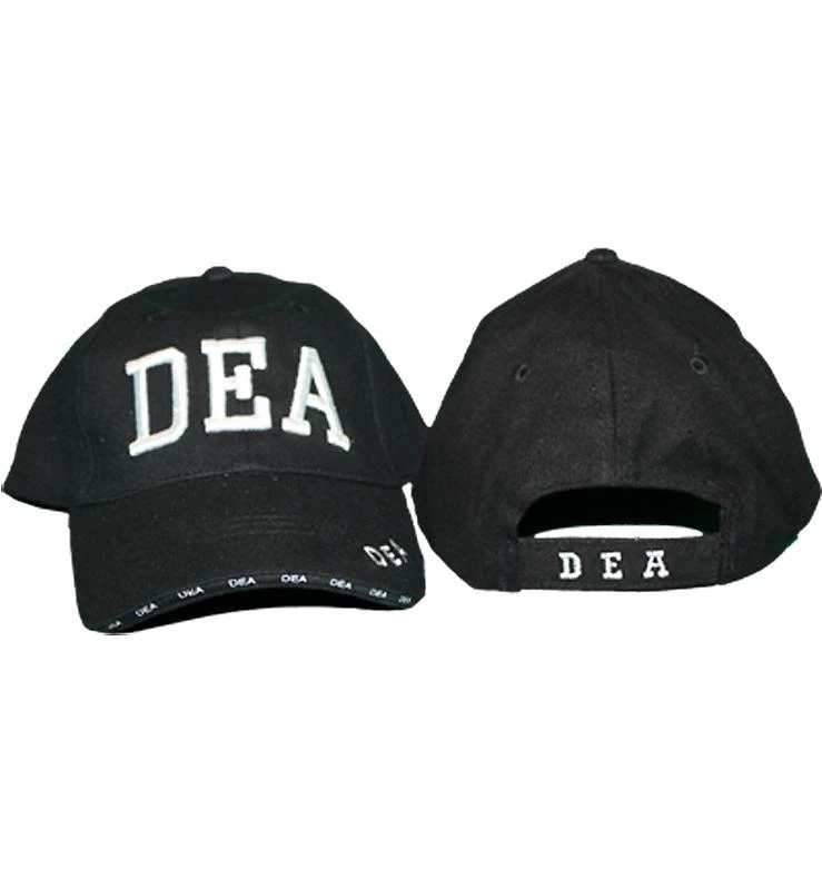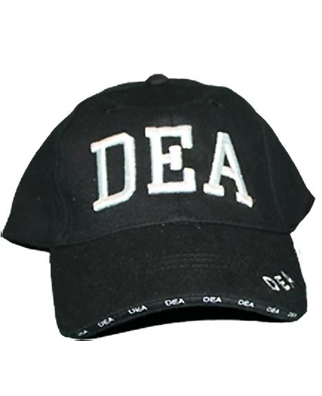 Drug Enforcement Agency black hat with DEA embroidered on the front, the back and the bill of the cap. Law enforcement and police black caps.