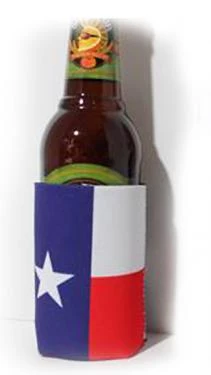 Flag of Texas insulated can jacket helps keep beverage cans and bottles frosty cold on hot days, easily identifying one’s beer or soft drink beverage from another person’s. Neoprene can sleeve with red and white stripes features Texas Lone Star in white on blue background. Using a can koozie or jacket cooler can reduce the rate a drink warms in the sun by up to 50%. RF-760219