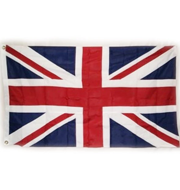 UK British polyester Union Jack flag with canvas header, brass grommets and 4 rows of sewing on fly side, size is 3-feet by 5-feet. RF-834798