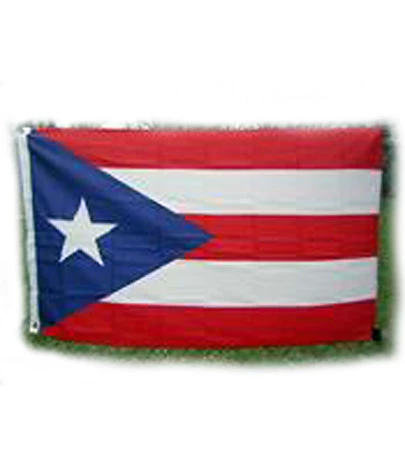 Puerto Rico polyester flag with canvas header and brass grommets, four rows of sewing on fly side, size is 3 feet by 5 feet. RF-830356