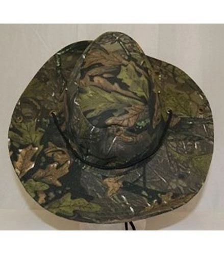 Green leaf camouflage hat with chin string, great hat for your next hunting trip.