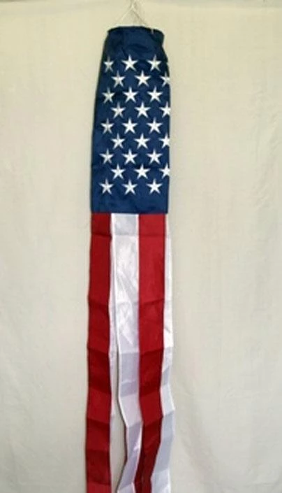 Deluxe USA American flag 60-inch nylon windsock with embroidered white stars.