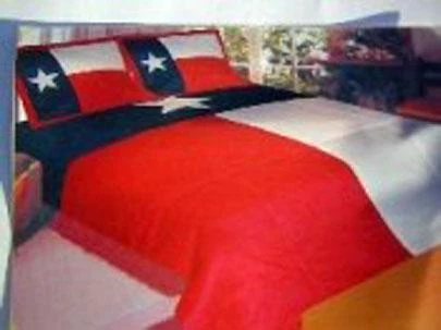 Texas state flag quilt comforter set with Queen size dimensions of 90-inches by 90-inches, includes two matching Texas flag pillow shams. RF-81531