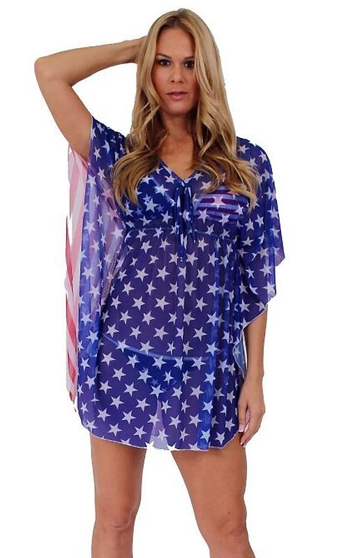 Shore Trendz USA American Flag Stars Sheer Beach Dress Cover-up ST Swim Collection